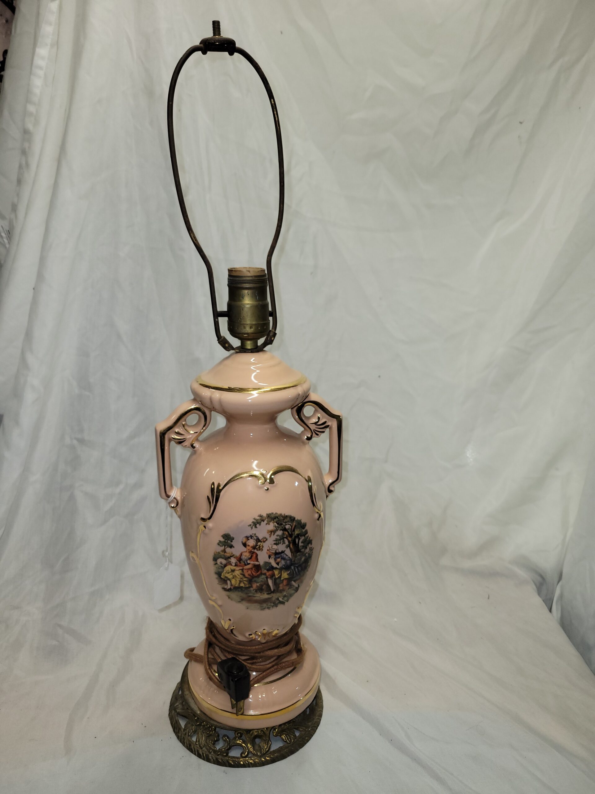 Elegant Vintage Pink Porcelain Urn/Trophy Table Lamp
