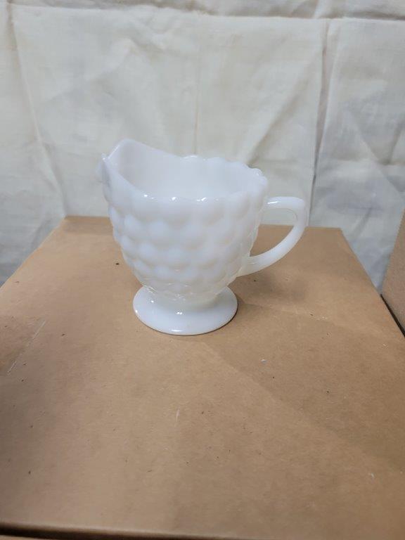 Fire King Bubble Pattern Pedestal Creamer Milk Glass