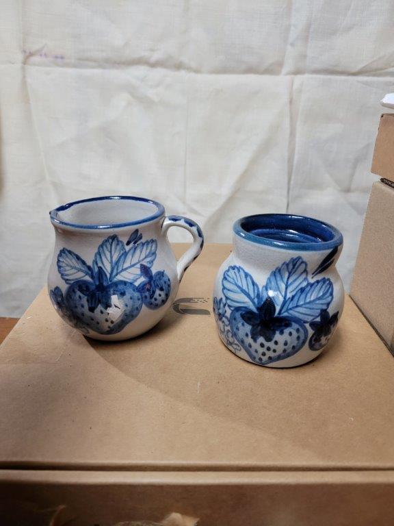 Glaze Ceramic Pottery Creamer Pitcher Blue Flower