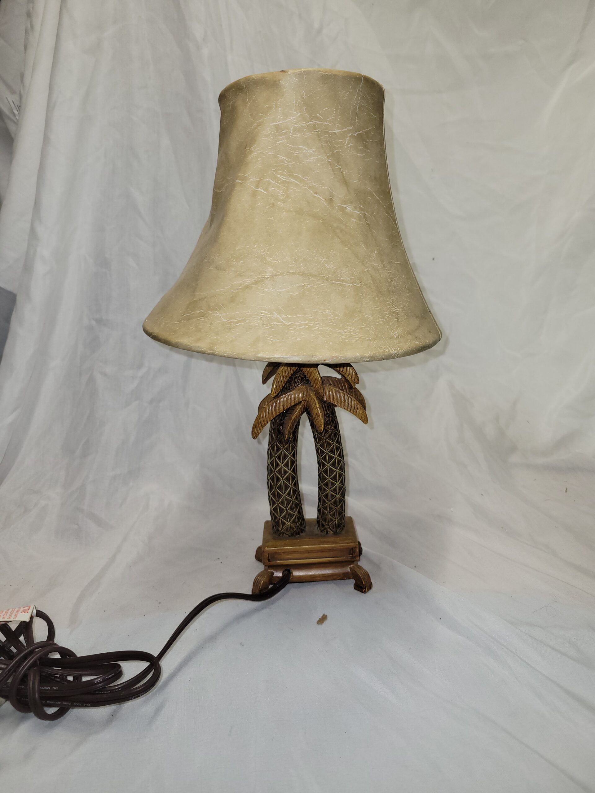 Rattan palm tree table lamp with leather lamp shade