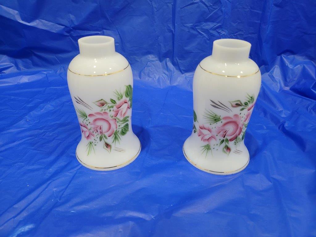 Vintage FLORAL MILK GLASS Chimney Boudoir Lamps – set of 2 lamps