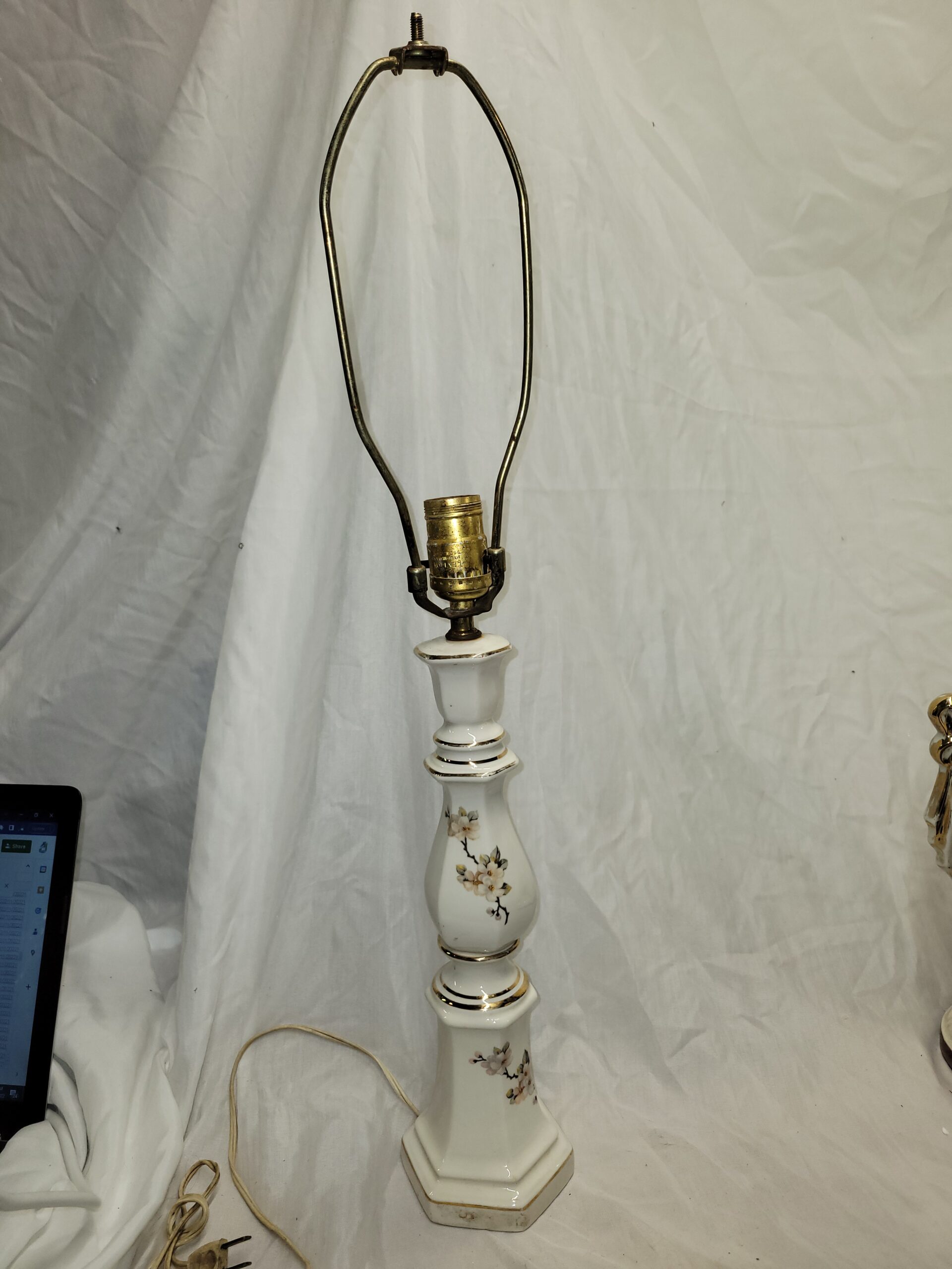 Vintage Gonder White Ceramic Lamp With Gold Floral Design