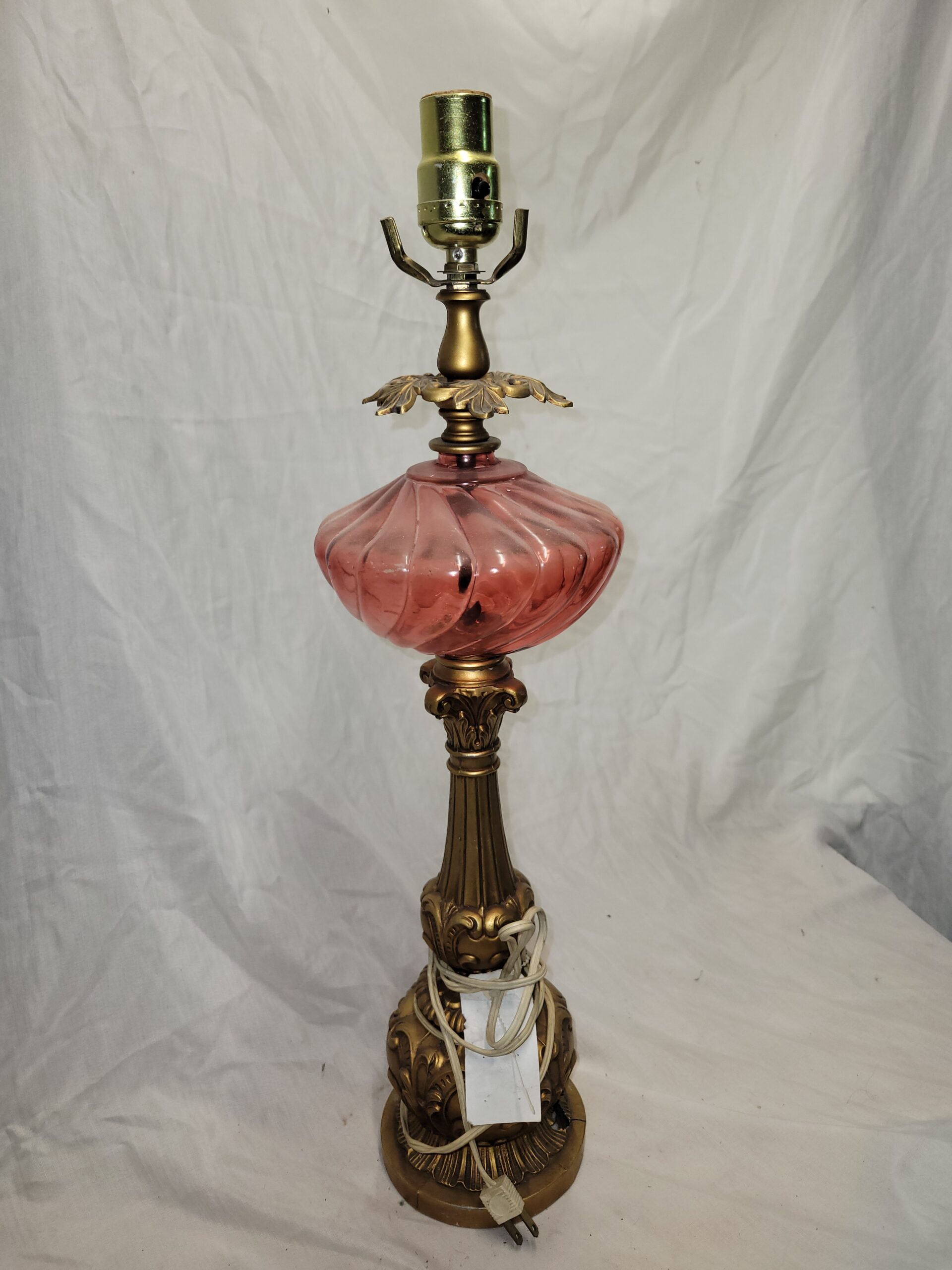 Vintage Lamp Ruby Red Quilted Pattern Electric