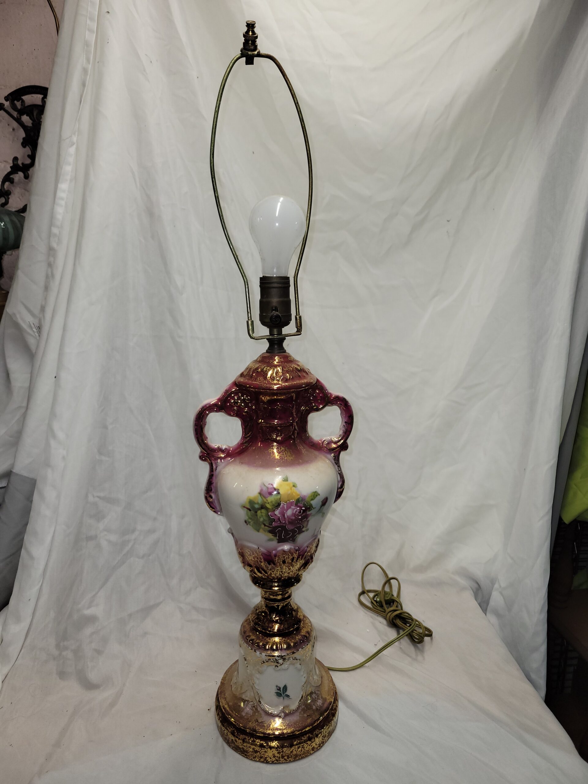 Vintage Porcelain Urn Style Lamp maroon and gold